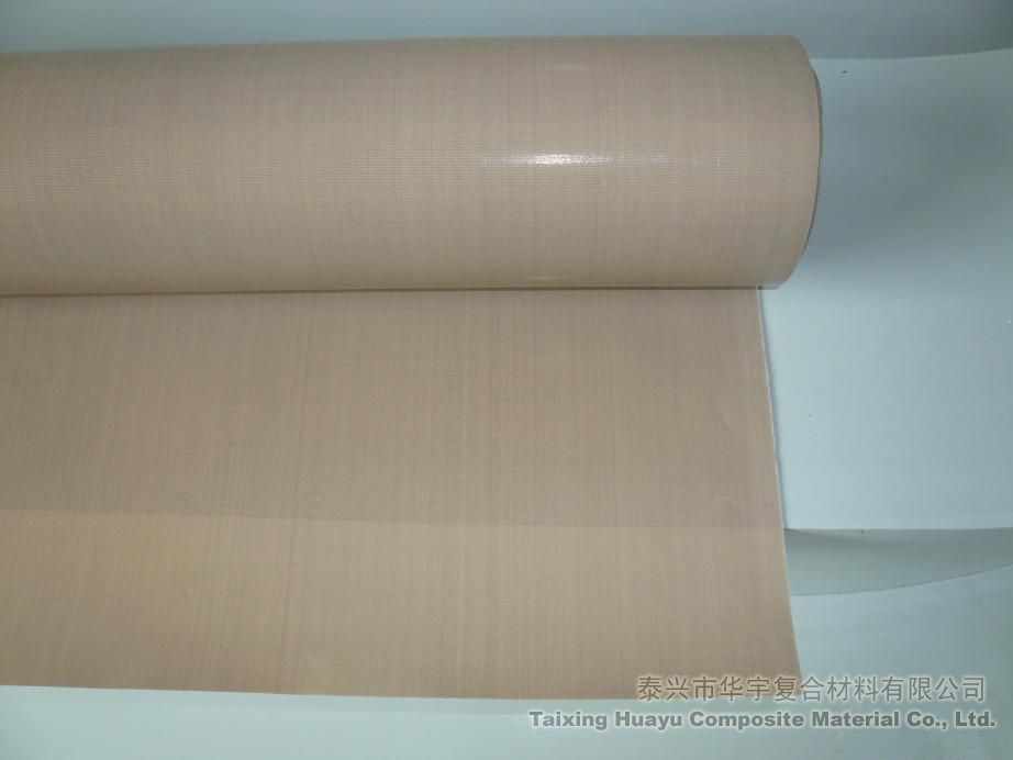 鐵氟龍層壓布主要是由高性能的玻璃纖維布組成,然后利用浸膠機反復浸漬涂覆鐵氟龍乳液讓其成為成品。一般來說,小型層壓機用的寬度是1.25m,而大型層壓機用的寬度是1.8m, 2.0m, 2.2m, 2.4m。不管哪一種寬度,其對應的長度一般不會超過6米。層壓布的顏色主要有棕色,黑色和白色,紋路為平紋,部分