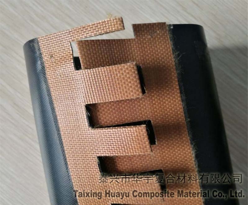 又叫凱夫拉布接頭,它采用凱夫拉布(芳綸布)為基布,浸漬鐵氟龍乳液而成的一種耐高溫布。它具有抗拉強度特別高、耐磨性特別好的特點,另外兼具了鐵氟龍高溫布耐高溫和抗粘的特性。這種接頭主要用于